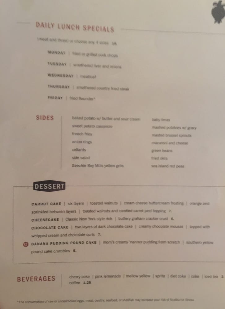 Choose any sides: baked or sweet potatoes, casserole, fries, onion rings, greens, salads, limas, mashed potatoes/gravy, brussel sprouts, mac-n-cheese, beans, okra, peas, corn. Fried chicken included.